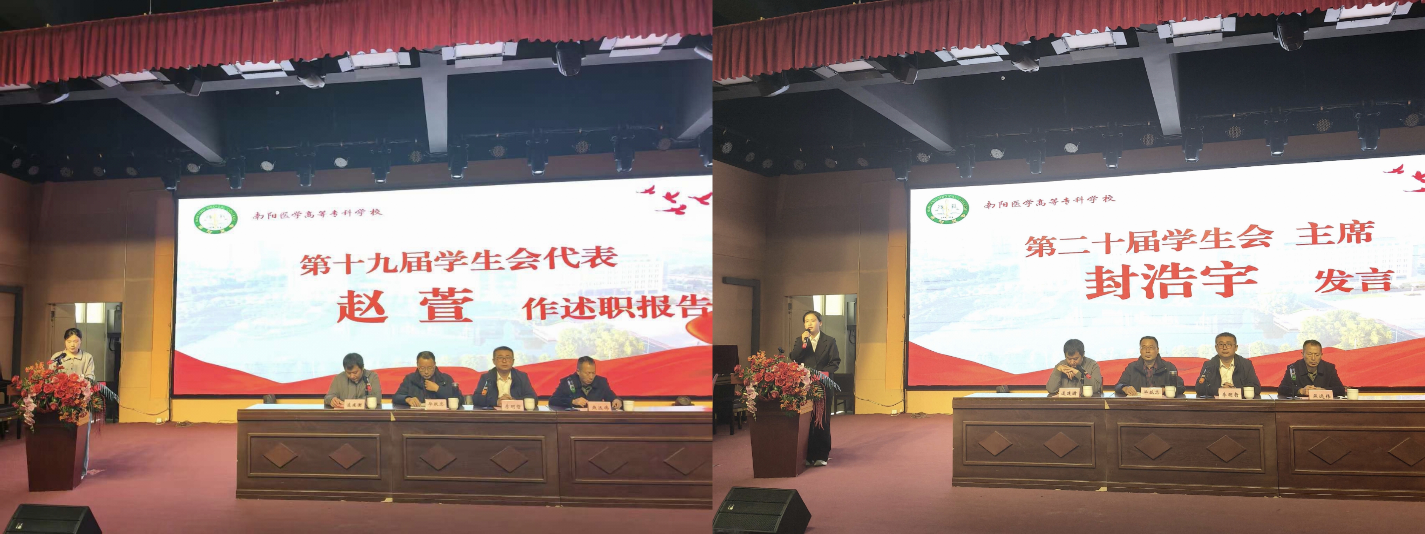 第十九届学生会代表赵萱进行述职报告,第二十届学生会主席封浩宇代表本届学生会发言并带领学生会成员进行入会宣誓。