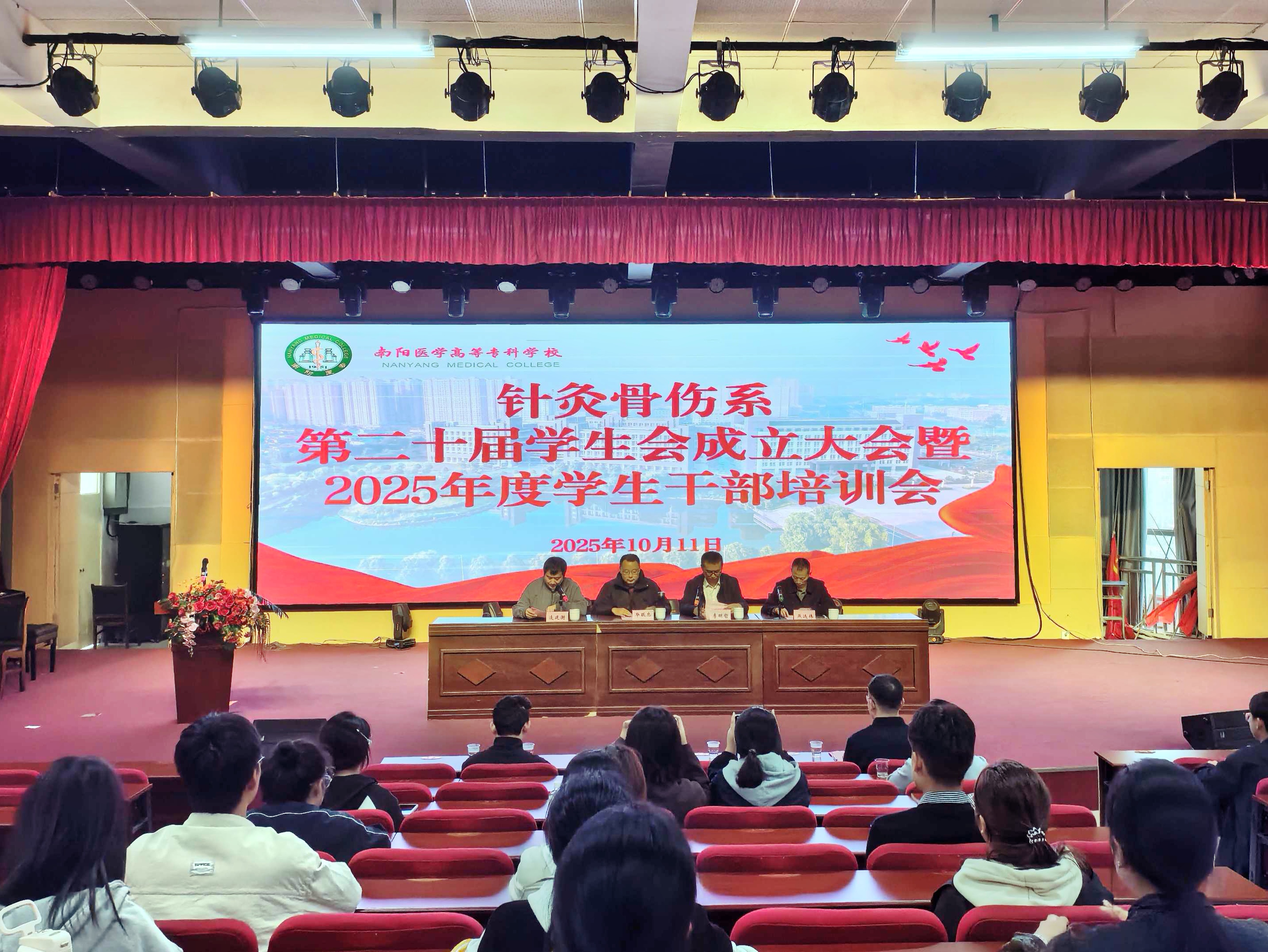 10月11日下午,针灸骨伤系于仲景东区报告厅举办第二十届学生会成立大会暨2025年度学生干部培训会。系领导班子成员、全体辅导员、班主任及学生干部参加此次会议。会议由党总支副书记逵建澍主持。