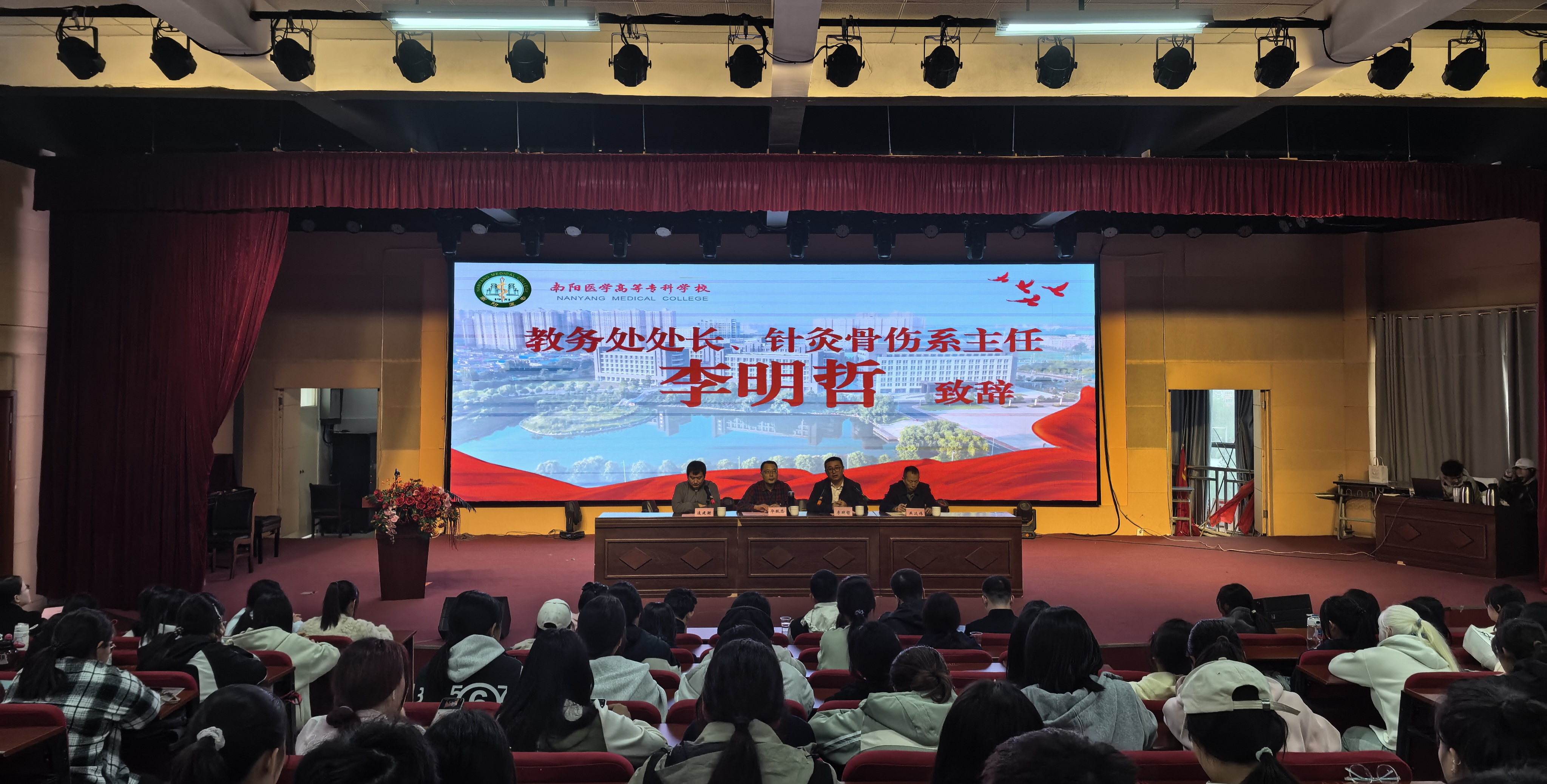 教务处处长兼针灸骨伤系主任李明哲致辞。他指出,学生会是为广大同学学习、生活等方面服务的学生组织,是联系老师和同学的桥梁和纽带。他对新一届学生会成员提出几点期望:一是要加强学习、明确职责,牢固树立服务师生的意识;二是要处理好学习与工作的关系,争做遵守校规校纪的模范;三是要注重团结协作,工作中讲求方法,做到公平公正、文明有礼;四是要传承优良作风,开拓创新,扎实工作,为学校建设贡献青春力量。