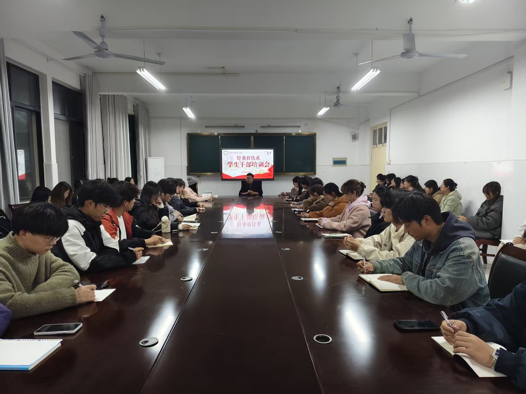 为进一步加强学生干部队伍建设,明确学生干部职责使命,确保学生会工作平稳有序衔接,3月20日,针灸骨伤系在系会议室开展春期学生干部培训会。系团总支书记马驰主持会议,第十九届学生会成员参加了此次培训。