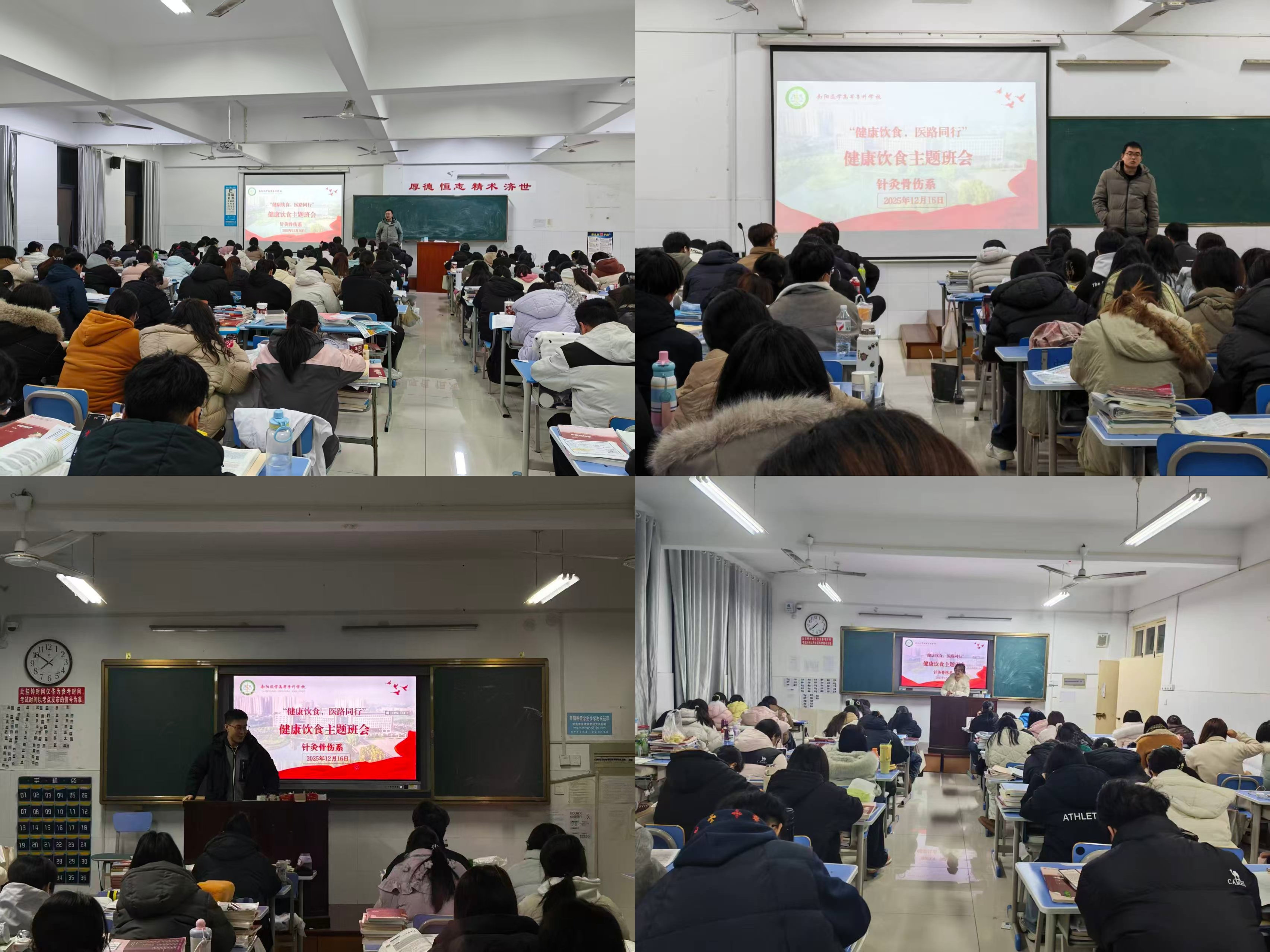 12月16日晚,针灸骨伤系各班辅导员、班主任进班开展健康饮食主题班会,班会围绕“健康饮食,医路同行”展开。本次班会提倡大家健康饮食,减少外卖依赖,规律进餐时间,避免饮食无常。