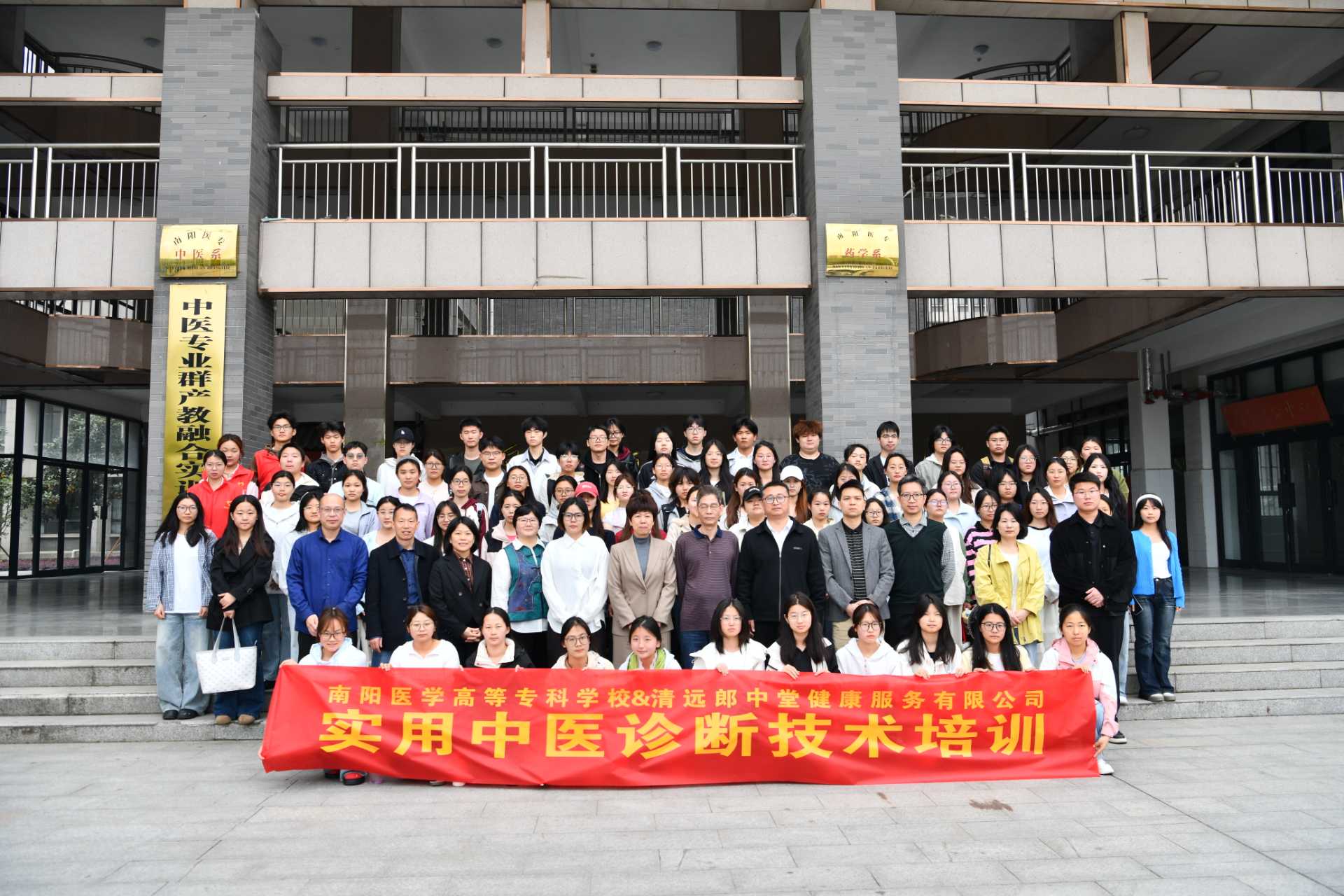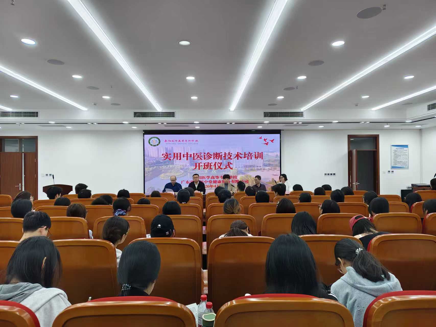 4月11日上午,教务处、针灸骨伤系联合广东清远郎中堂健康服务有限公司举办实用中医诊断技术培训开班仪式。河南省医药行业协会职业教育分会秘书长耿广平、教务处处长李明哲、广东清远郎中堂健康服务有限公司董事长马少荣,校企相关负责人及全体参训师生参加仪式。