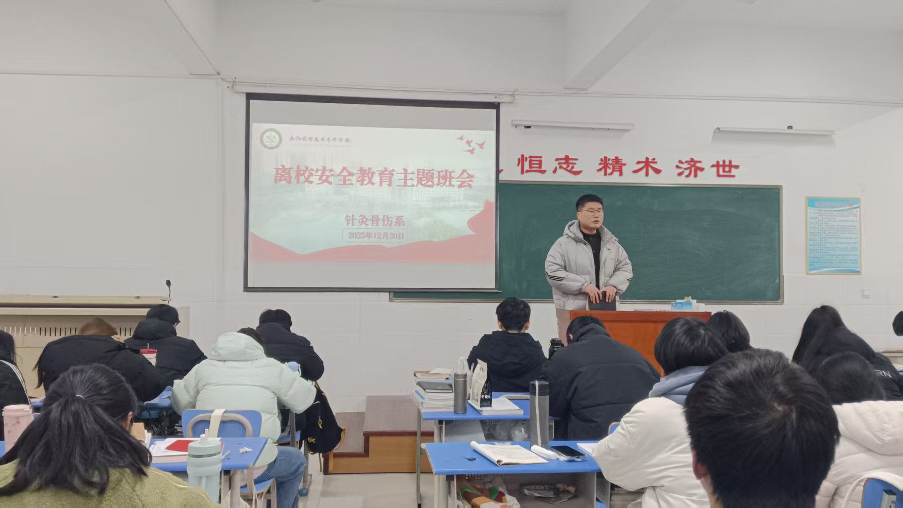 元旦假期将至,为切实增强学生安全防范意识,确保全体学生度过一个平安、有序的假期,针灸骨伤系于12月30日组织开展了“平安离校,安全相伴”元旦假期前系列安全教育活动,通过主题班会、隐患排查、精准提醒等多种形式,为学生假期安全保驾护航。